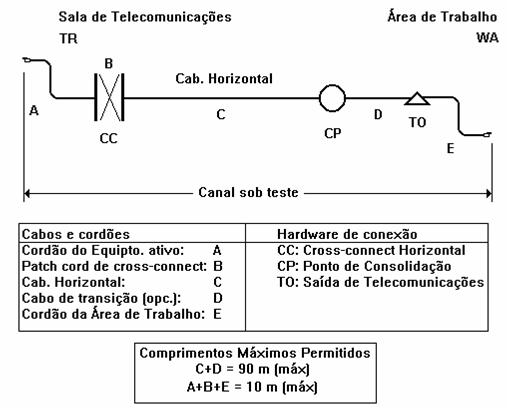 ◦A norma especifica um comprimento máximo de 100 metros para o lance de cabo (na realidade 90 metros de cabo fixo e 10 metros para cabos de emenda).