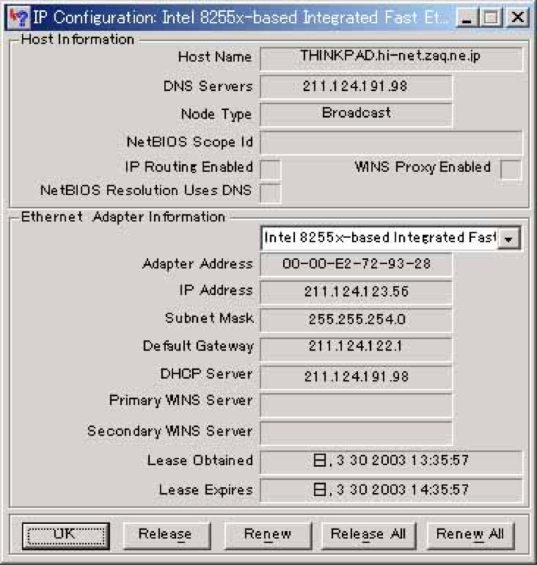 No caso de várias placas de rede, utilizamos as opções Release All e Renew All.