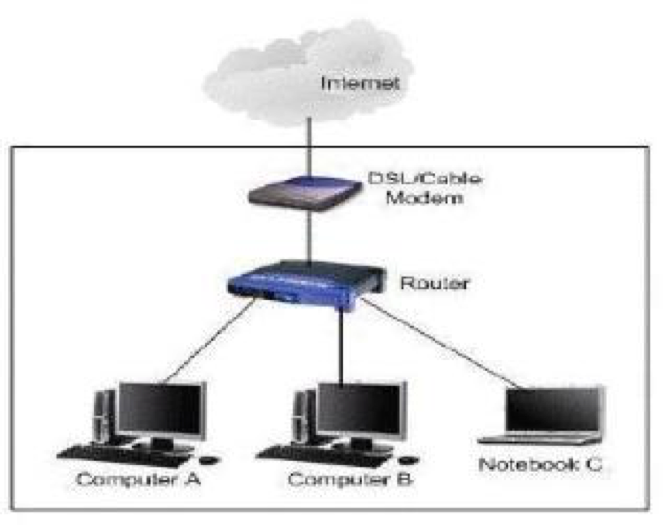 Neste caso estamos utilizando um router-switch, que vai permitir a ligação à Internet, ligação a computadores através das portas RJ-45 e que tem a particularidade de permitir ligação por wireless.