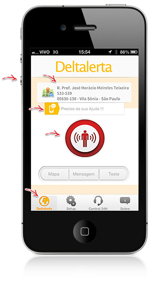 Para utilizar o Deltalerta você também necessita cadastrar sua lista de contatos considerados confiáveis para serem avisados caso ocorra algum problema. Parecido com o Motorola Alerta, o aplicativo disponibiliza o botão “SOS”, que ao ser tocado envia uma mensagem de socorro para as pessoas que você selecionou, junto a sua localização GPS.