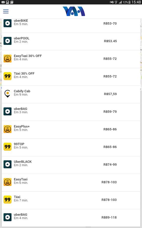 O aplicativo Vah tem a função de realizar comparativos de preços de transporte privado. Incluindo os principais serviços como Uber, Easy Taxi, 99 Taxi e outros, além de alertar sobre promoções do dia de cada empresa em particular.