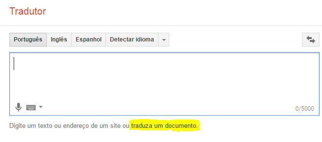 Agora, você só tem que clicar no link, fazer upload do documento e clicar em “traduzir”.