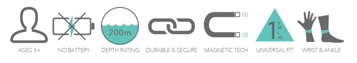 Só pode ser usado por pessoas acima de 5 anos de idade. Sem baterias, sem eletricidade, sem partes móveis. Pode usar a Sharkbanz como pulseira ou como tornozeleira. A ideia é que os tubarões se sitam irritados ou amedrontados pelo campo eletromagnético emitido pelo ímã por causa de suas capacidades afiadas do electroreception.