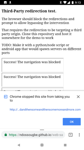 Esses anúncios são, muitas vezes, maliciosos, e o recurso pretende reduzir a quantidade de usuários que eventualmente caiam em golpes, abrindo abas com conteúdo que se passa por sites autênticos e praticando o golpe do phishing. Quando um anúncio que tentar abrir uma nova aba for bloqueado, o usuário verá a seguinte informação em sua tela: