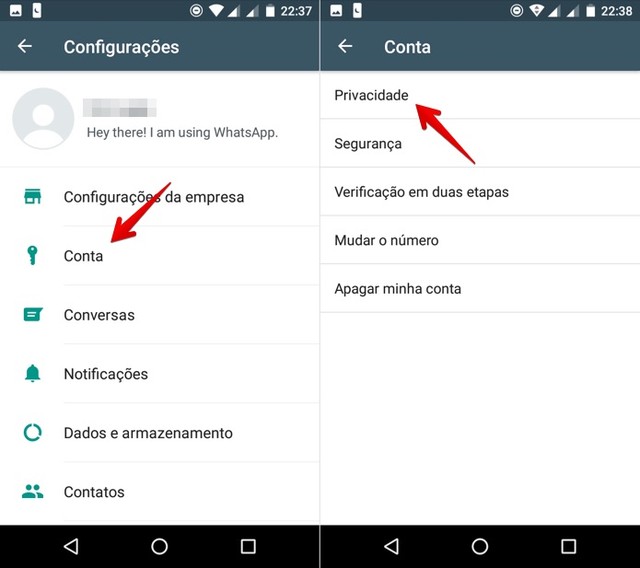 Passo 2. Abra “Conta” e toque em “Privacidade”.