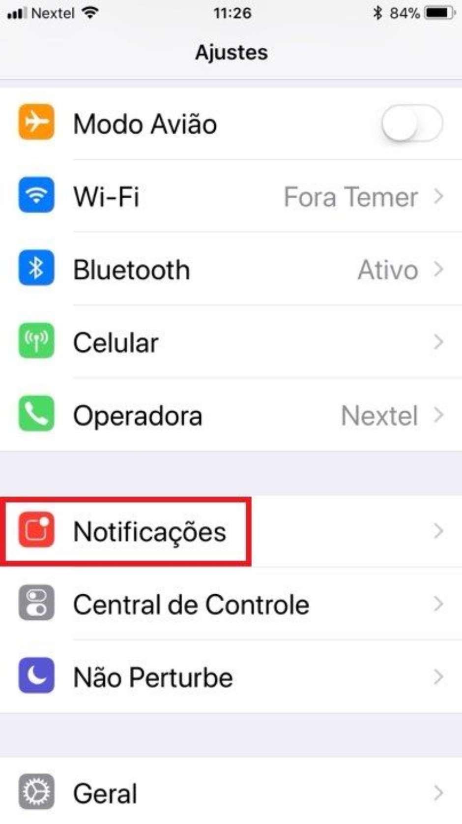 Passo 1: Acesse os “Ajustes” do iPhone e clique em “Notificações”.